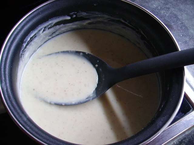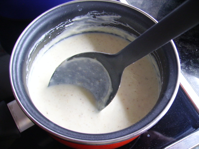 4.- Vamos sumando la bechamel a la mezcla hasta hacer una masa consistente. Metemos en la nevera para que enfríe un par de horas.