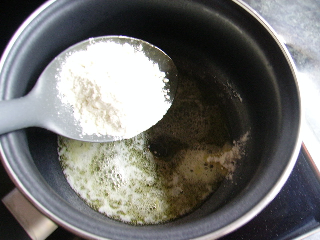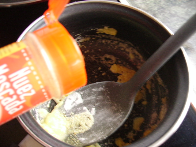 1.- Preparamos la bechamel derritiendo la mantequilla y agregando la harina y cuando esté dorada agregamos la leche, un poco de sal de ajo y nuez moscada y removemos hasta que monte y se haga espesa.
