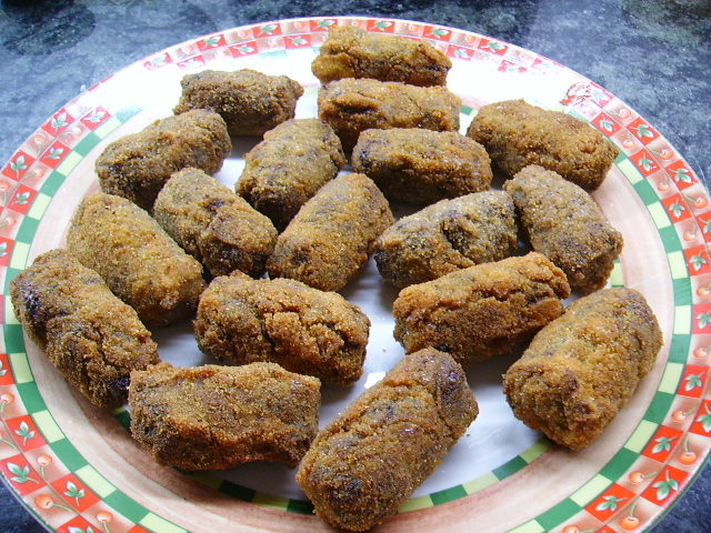 5.- Ahora damos forma a las croquetas pasando la masa por huevo y pan rallado y luego freímos en aceite caliente y abundante.