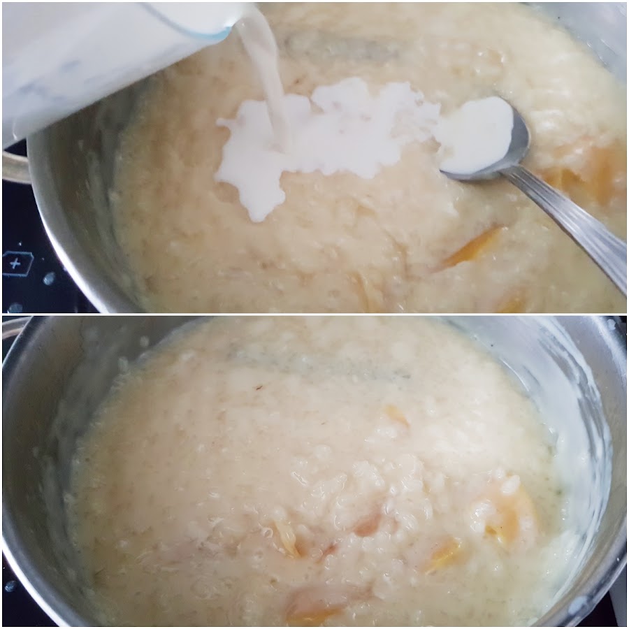 2. - Diluimos la maizena en la leche que habíamos apartado y la añadimos al arroz con leche.