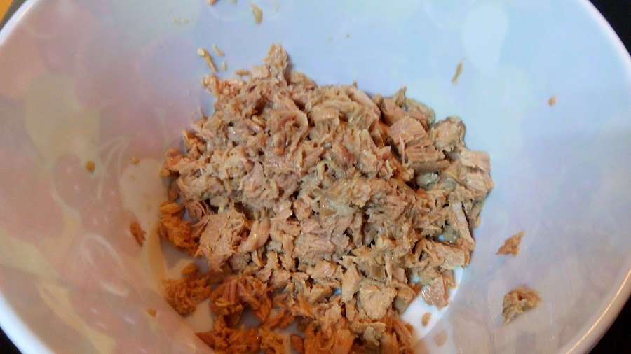 Escurrimos bien el atún del aceite y lo ponemos en un bol grande.