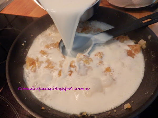 Una vez bien rehogada la harina incorporar la leche caliente y seguir removiendo, te lo aseguro parece que se forman grumos pero si sigues removiendo desaparecerán.