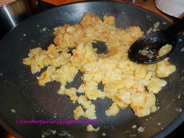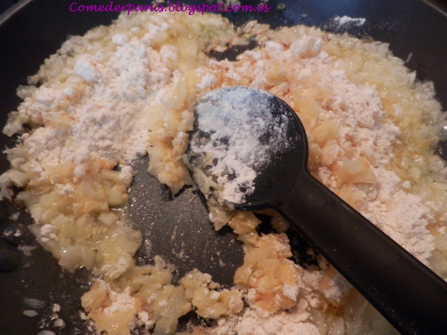 Cuando la cebolla esté blandita añadimos los 45 g. de harina y rehogar sin dejar de remover.
