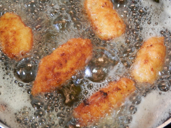 Mientras habremos puesto aceite de oliva (en su defecto de girasol) a calentar y cuando el aceite esté muy caliente, vamos poniendo una a una las croquetas y vamos dándole vuelta conforme se vayan dorando.