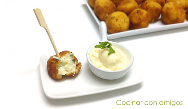 Estas croquetas de bacalao me encanta acompañarlas de "alioli casero", quedan súper suaves y cremosas, te las comes casi sin darte cuenta.