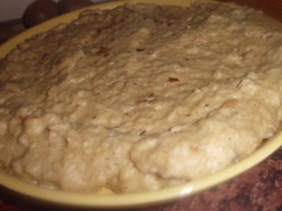 1/2 k. de bacalao desalado y desmigado. No me acuerdo de la cantidad exacta que le puse.