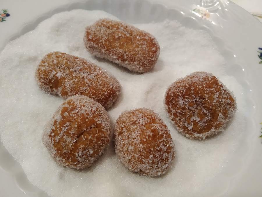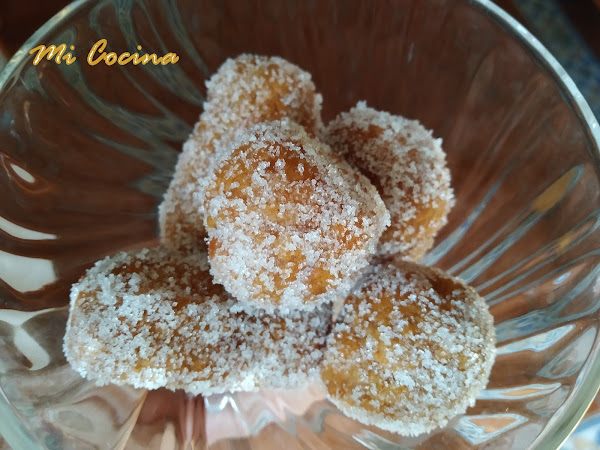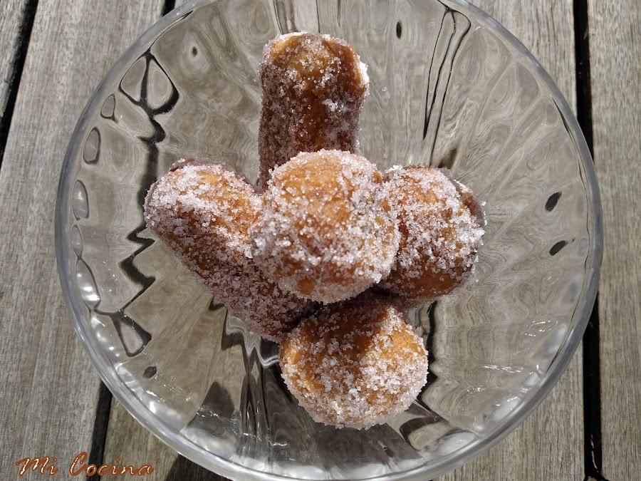 Escurrir bien el aceite sobre papel de cocina, pasándolas al recipiente con azúcar, procurando que al rebozar queden bien impregnadas por todos lados.