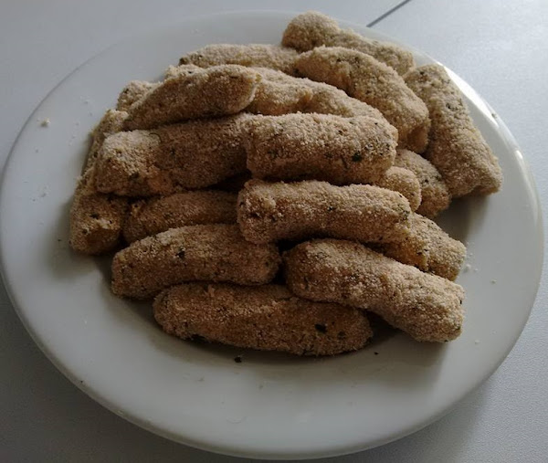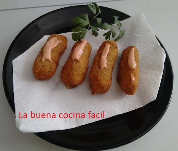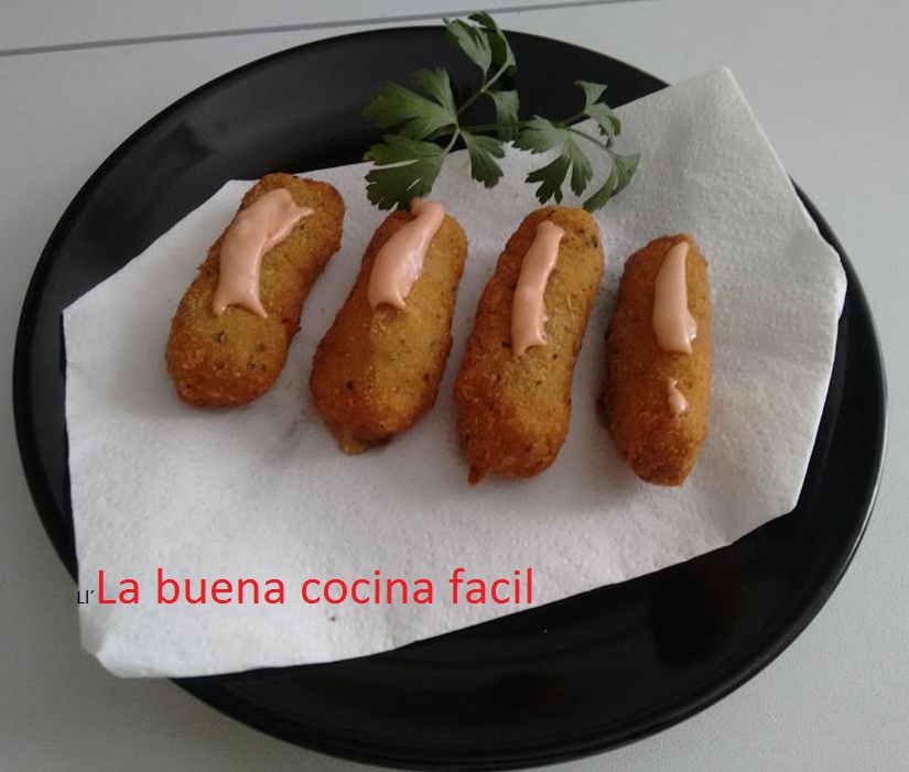 Batimos un huevo, y en otro plato ponemos pan rallado, cogemos trozos de masa y vamos dándole la forma, las pasamos primero por huevo y después por pan rallado y listas para freir.