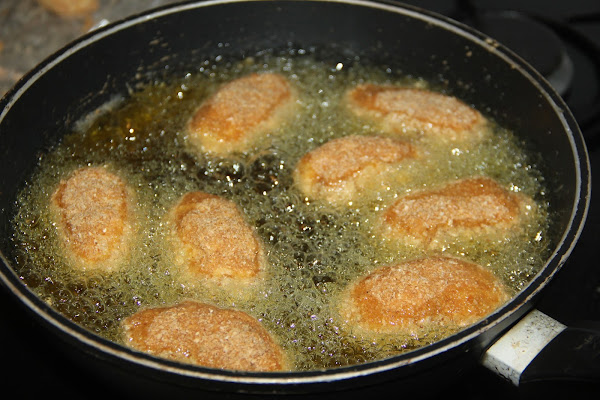 Freímos en abundante aceite de oliva caliente, evitando hacer demasiadas al mismo tiempo para que no baje la temperatura del aceite.