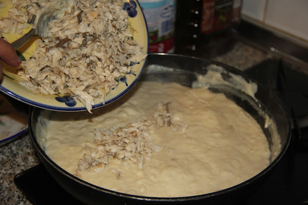 Comenzamos por cocer la boga junto a unas hojas de laurel. Una vez cocida la limpiamos de espinas, la desmigamos y reservamos. Podemos empezar entonces a elaborar la bechamel. Yo la preparo de la siguiente manera. Coloco en una sartén la mantequilla y tres cucharadas de aceite y freimos la cebolla, Cuando esté pochada añadimos la harina, removiendo bien con unas varillas. Seguidamente añado la leche mantenemos al fuego hasta que espese sin dejar de mover. Antes de retirarla añadimos pimienta, sal y nuez moscada. En ese momento añadimos la boga y dejamos reposar al menos 24 horas para que tome cuerpo.