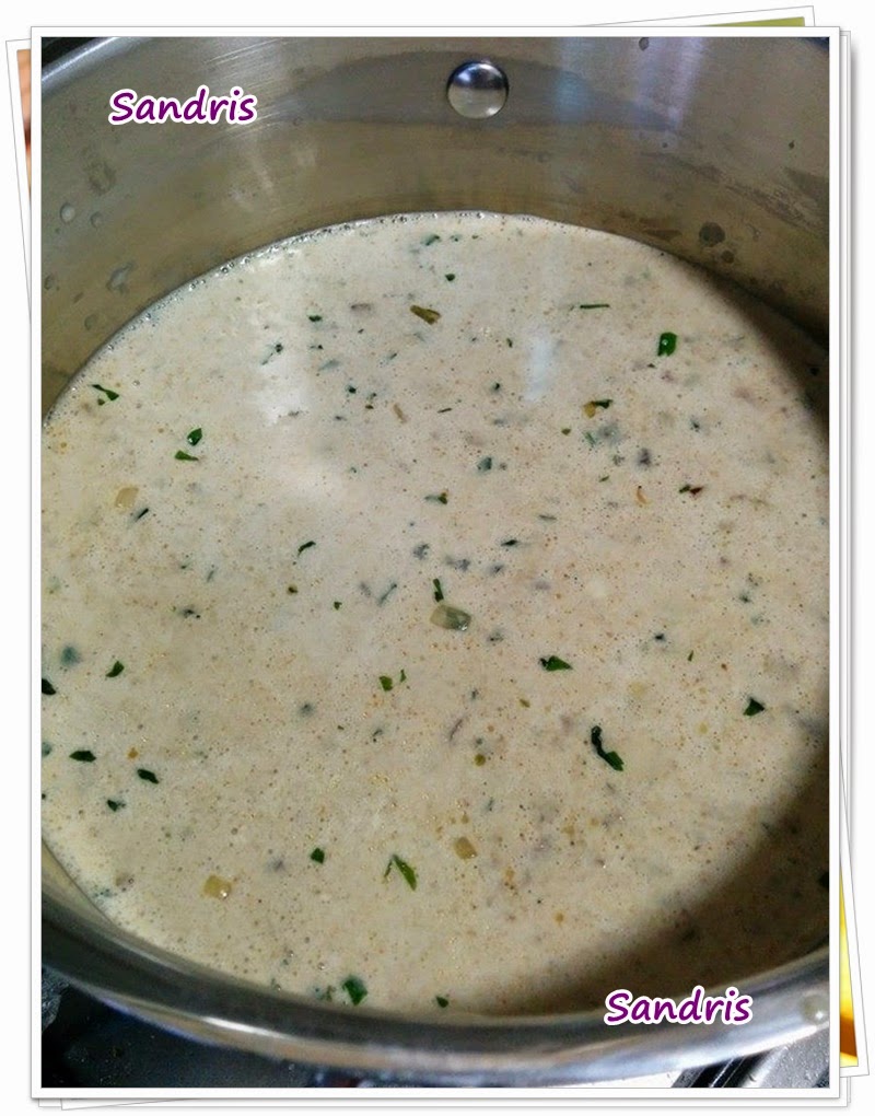 La segunda parte que habíamos reservado al principio de los boletus, la mezclamos con el sofrito ahora y todo esto lo agregamos a la masa que hemos pasado por el turmix. Así conseguimos una masa fina con tropezones ricos ricos. Todo esto, lo ponemos a cocer a fuego medio sin dejar de remover hasta que se despegue de las paredes del cazo o la olla que hayáis usado. Una vez se despegue de las paredes... ya está listo!!!
