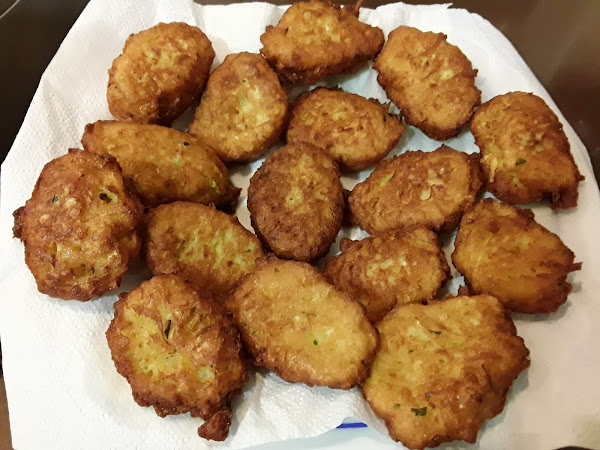 dejaremos que se doren por ambos lados y retiraremos a un plato al cual le habremos puesto papel de cocina para que sobre él suelten el aceite sobrante, así procederemos hasta quedarnos sin masa, cuando las tengáis hechas dejáis 5 minutillos de reposo y servir para acompañar en alguna cena, espero que os gusten, y no saben a calabacín están riquísimas, probarlo y ya me diréis, buen provecho