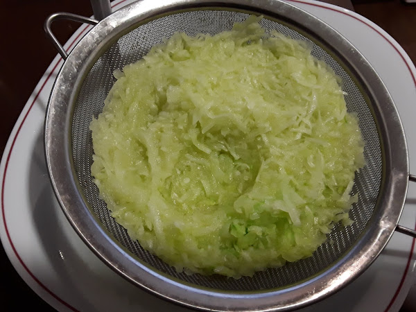 y lo pondremos dentro de un colador para que suelte todo el agua que tiene (lo dejamos sobre 1 horita, más o menos), de vez en cuando iremos y con la ayuda de una cuchara lo aplastaremos sobre el colador para que vaya escurriendo el agua, una vez esté ya escurrido lo pondremos en un plato hondo o en un bol,
