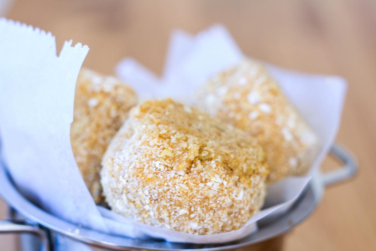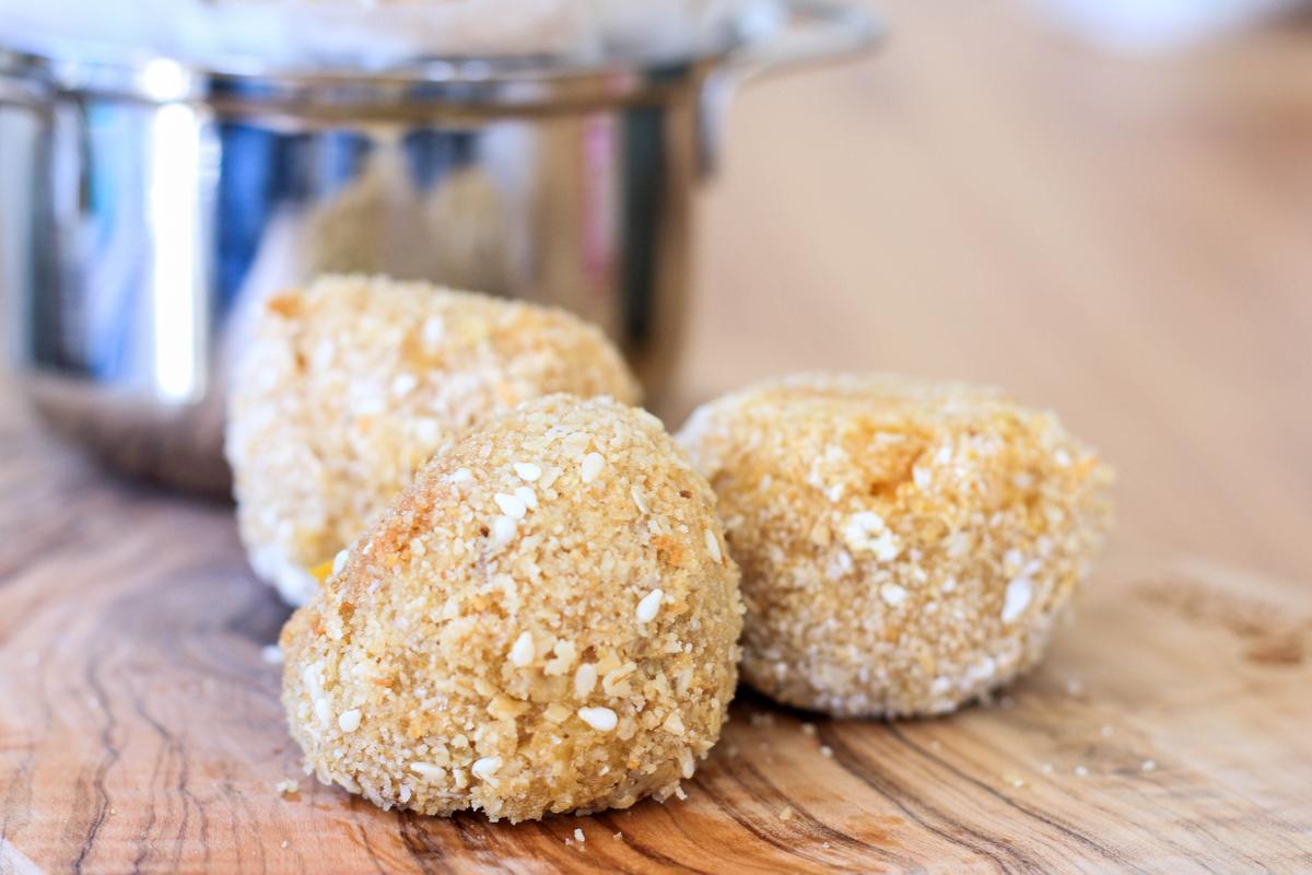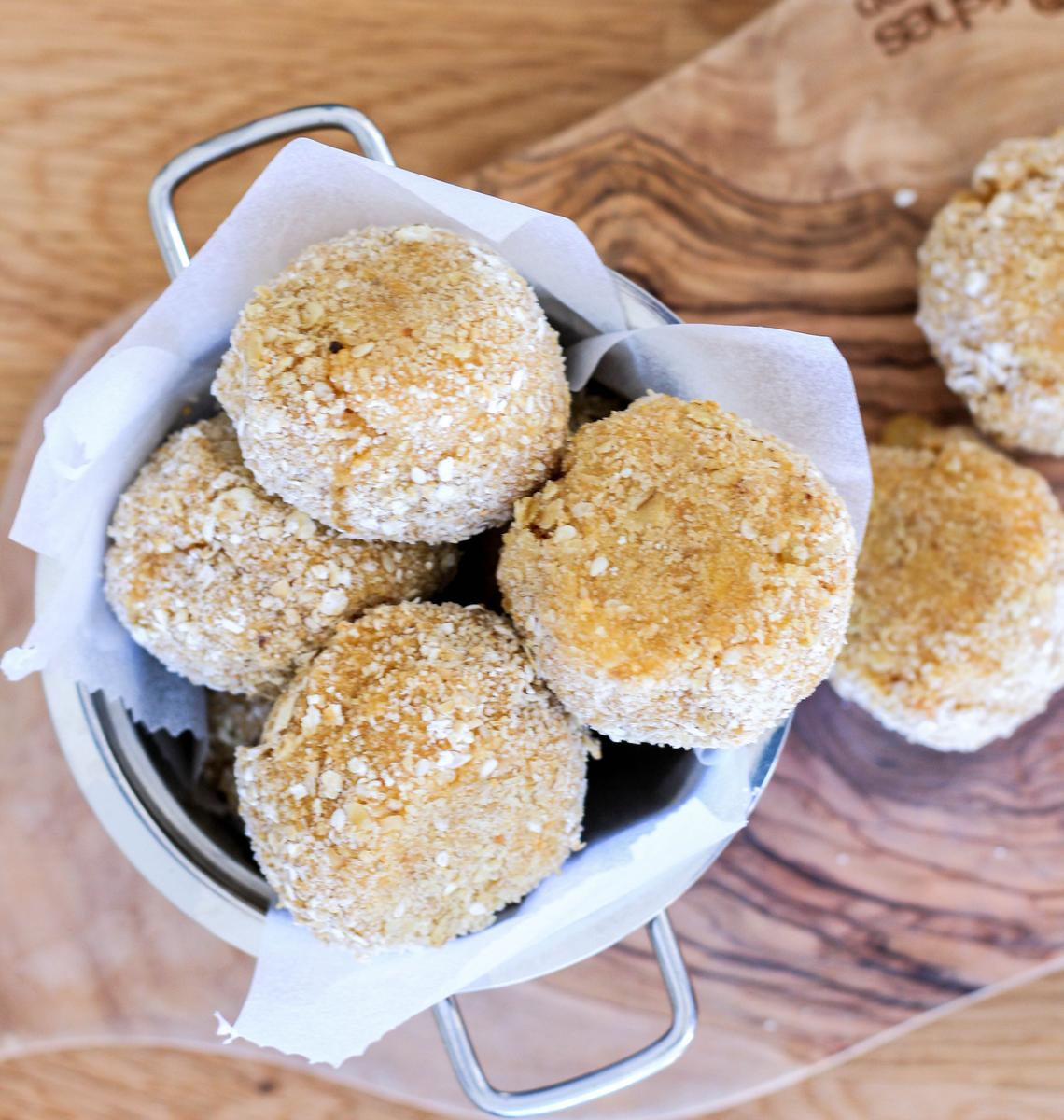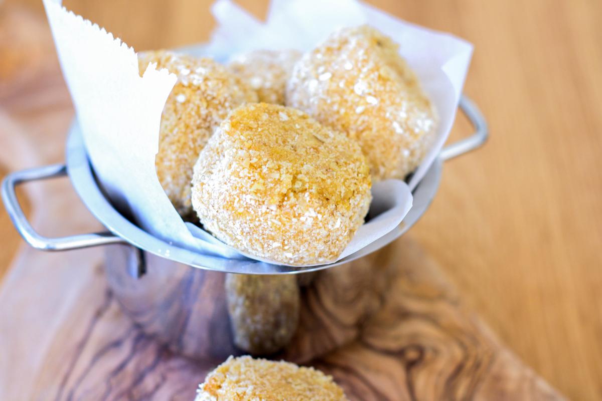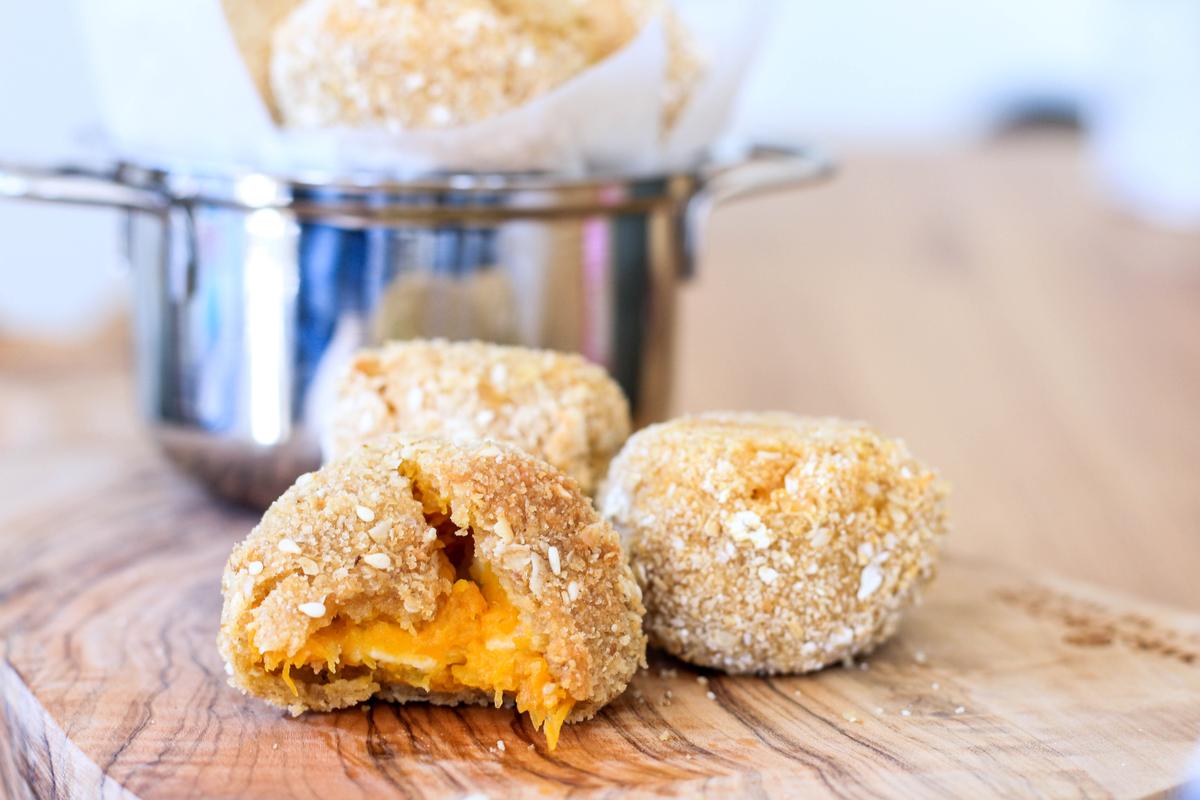 Croquetas de calabaza con corazón de queso brie. Ideal como acompañamiento o para incluir en una picada saludable.