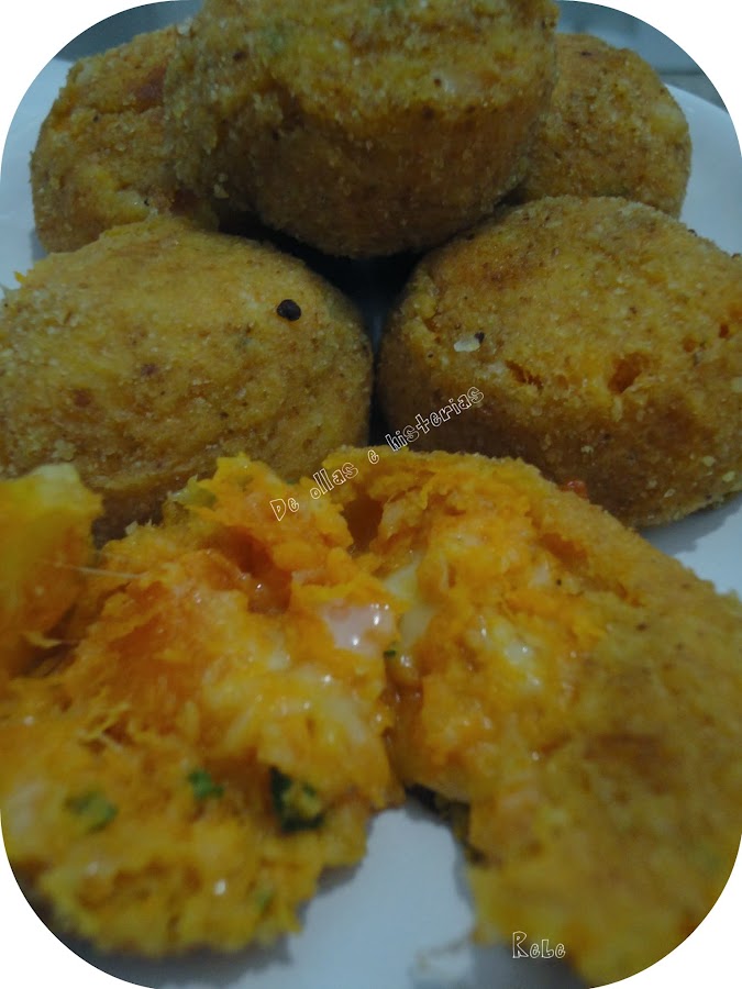 Hoy unas croquetas de calabaza y queso; muy sencillas de preparar y un tanto distintas a las croquetas que estamos habituados ya que no llevan besamel ni nada similar...