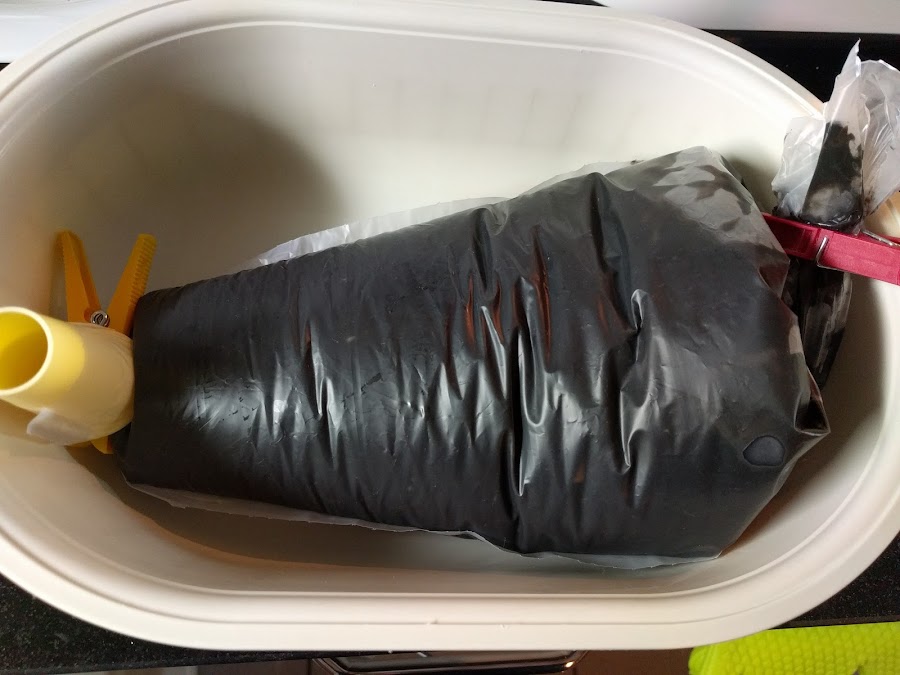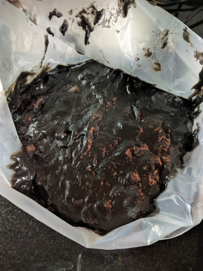 Incorporamos los calamares reservados y la tinta y cocinamos 6 minutos temperatura 100 y velocidad 2. Cuando termina el tiempo sacáis a una manga desechable como os enseño en las fotos