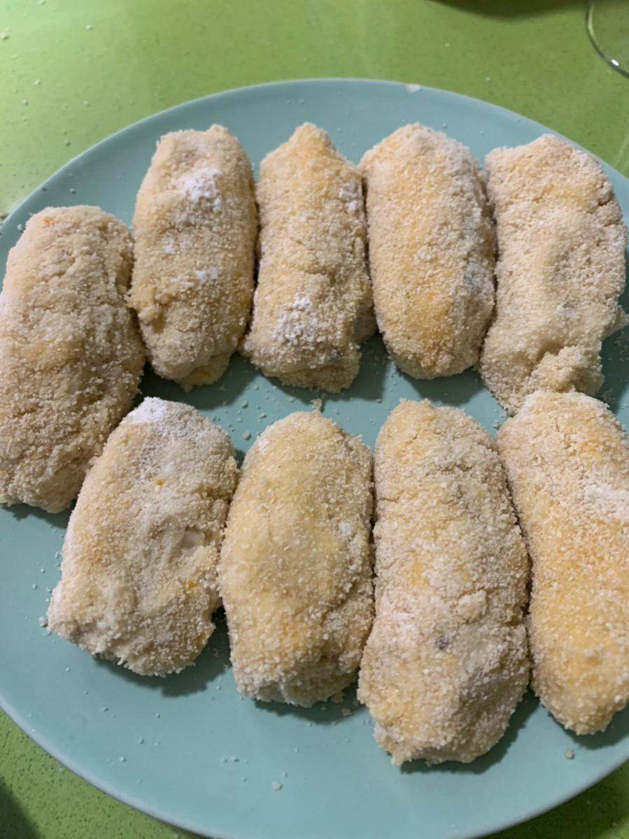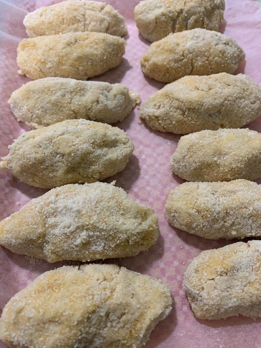 Nos limpiamos muy bien las manos y yo me pongo un poco de aceite para que no se me pegue la masa. Hacemos las croquetas en la forma que mas nos guste. Redondas, largas, pequeñas o grandes. A mi lo que me gusta es que no queden igual así se nota que son caseras caseras. Primero las paso por harina, después por huevo y termino con el pan rallado. Una vez terminadas todas lo que yo hago es congelar separada y cunado ya las tengo las pongo en una bolsa para almacenar en el congelador.