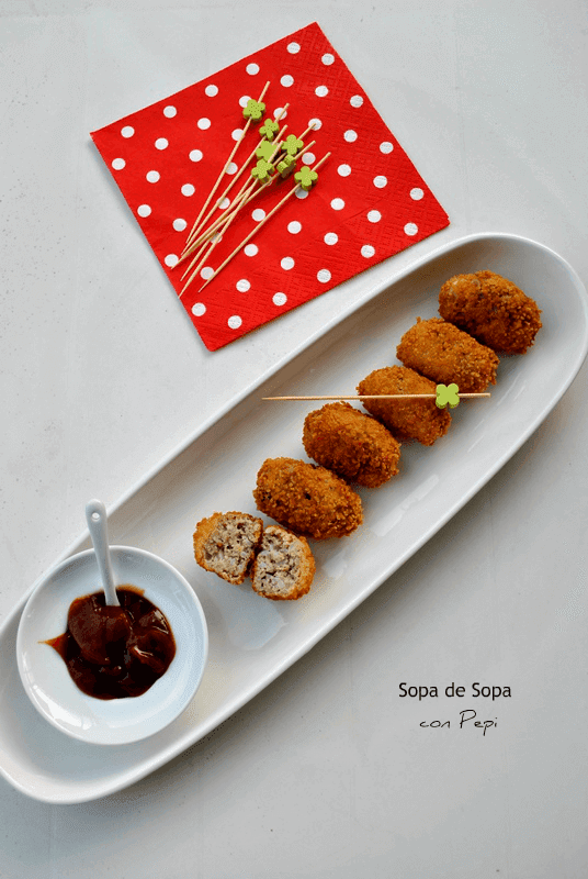 Estas croquetas de carne picada, queso y arroz son del grupo "novedad, original..." tanto en los ingredientes que conlleva, como en la elaboración.