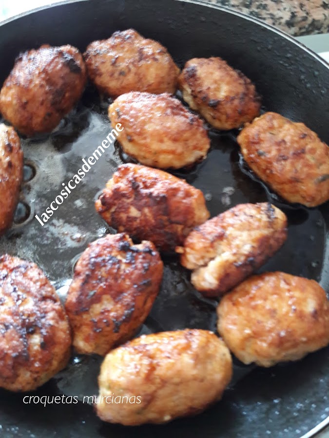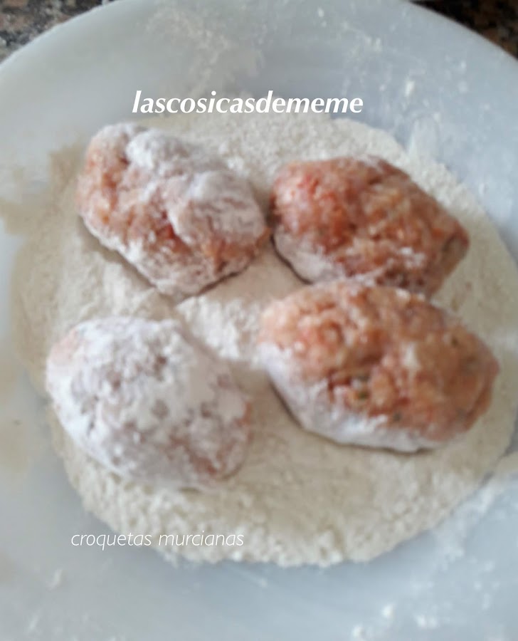 Un día se me ocurrió como quedarían unas croquetas hechas con el preparado murciano que hacemos para las pelotas, las hice y el resultado me gusto mucho, así que pensé daros otra idea para el uso del preparado tan especial de la tierra murciana...