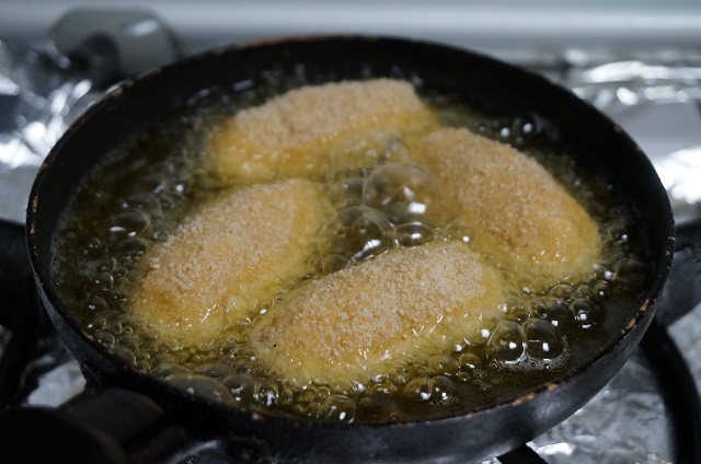 Ponemos una sartén al fuego, cuando esté caliente empezaremos a freír las croquetas.