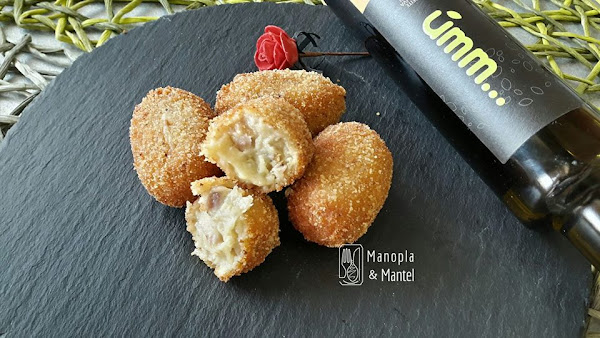 Damos la forma a las croquetas y las pasamos por harina, huevo y pan rallado.