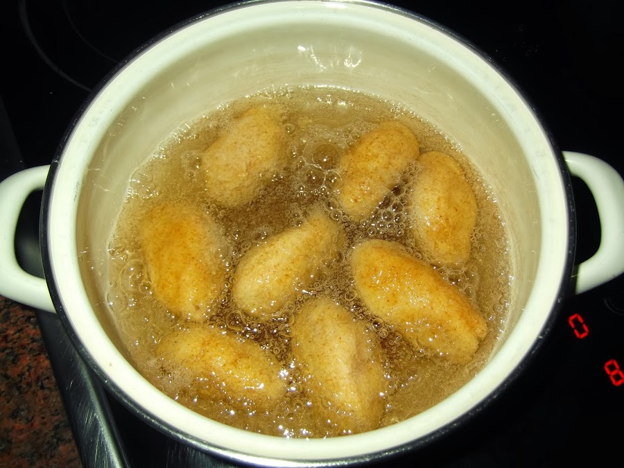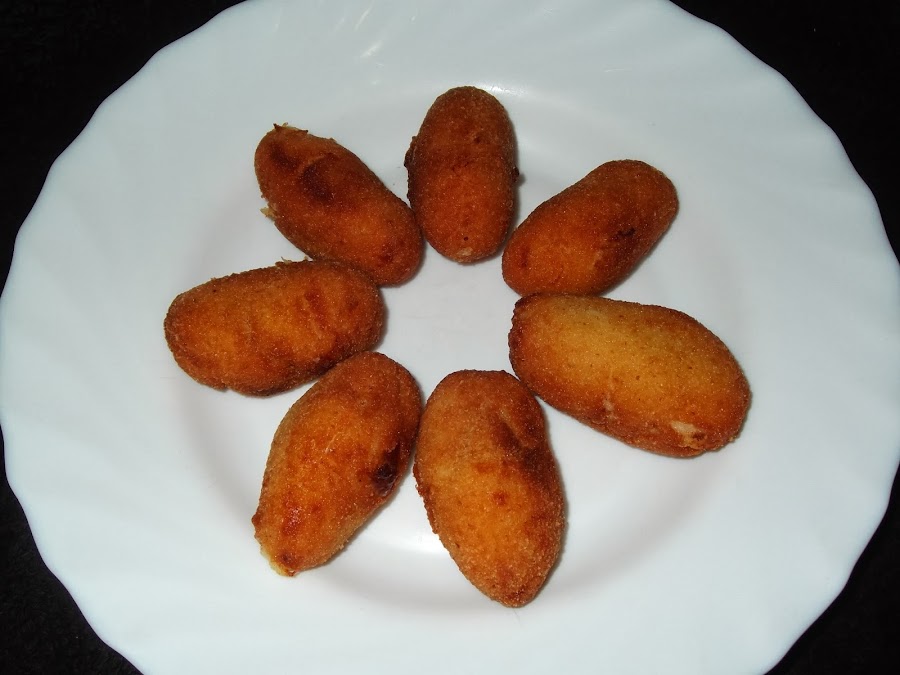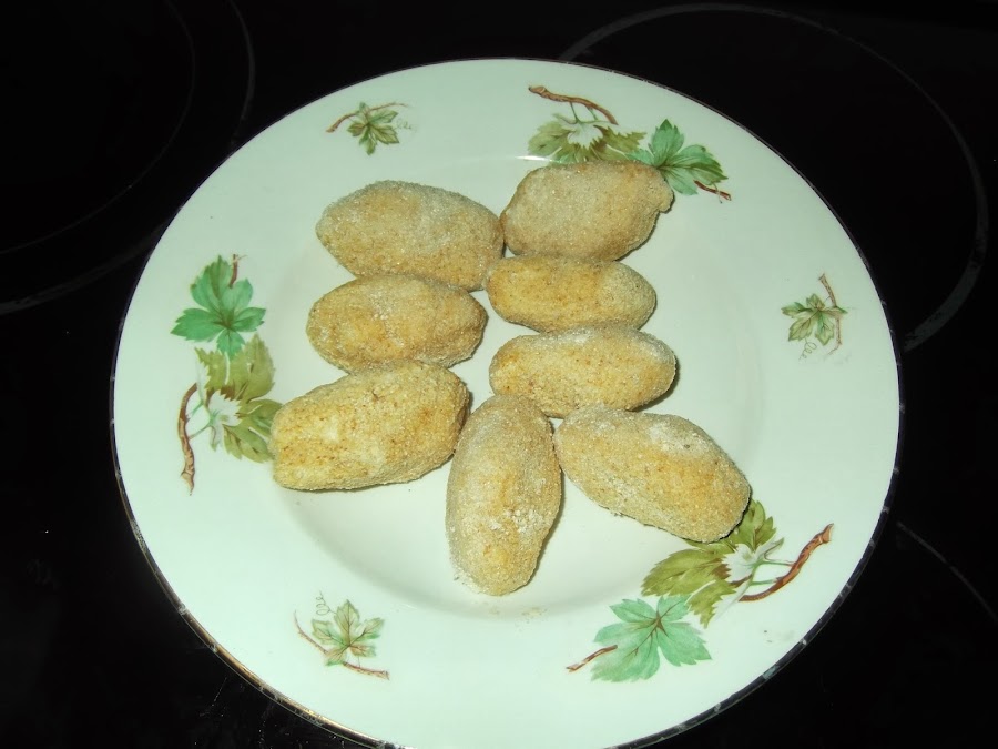 Pasada una hora comenzamos a realizar nuestras croquetas con la forma que más os guste, en este caso mi madre las hace ovaladas. Se pasan por pan rallado, huevo y otra vez por pan rallado y se ponen a freír en abundante aceite caliente, puede ser en una sartén o en una freidora y ya están listas para comer. Es un bocado exquisito y muy barato que podéis utilizar en vuestras cenas con amigos. Por supuesto se pueden congelar así que podéis hacer muchas y tenerlas en el congelador para el día que no sepáis qué cenar sacar unas ricas y caseras croquetas.