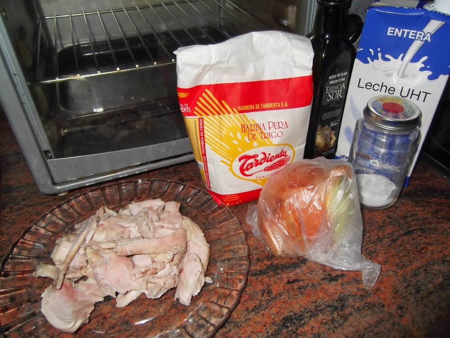 Lo primero que hacemos es la bechamel, para ello echamos el aceite en la sartén y ponemos la cebolla cortada en cuadraditos. Cuando ya le ha dado gusto al aceite se retira (aunque se puede dejar, aunque mi madre nunca lo hace). A continuación, echamos las cucharadas de harina, una a una para que se cocinen. Echamos los dos vasos y medio de leche, poco a poco para que la bechamel vaya cogiendo consistencia.