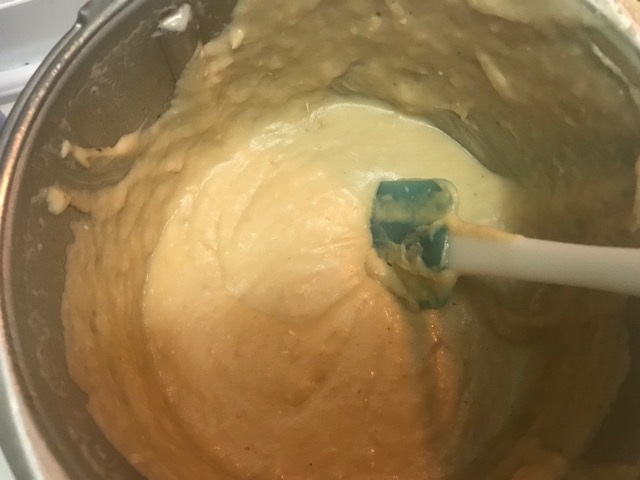Añadir a la carne reservada y mezclar con la espátula hasta que quede todo integrado.