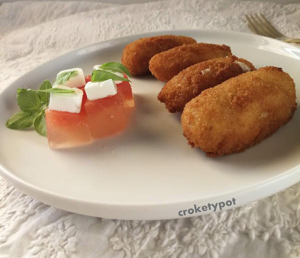 Las he acompañado con un agua de tomate, queso feta y albahaca.