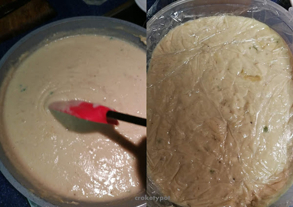La pasamos a un recipiente tapada con un film pegado para que no haga costra. Se deja enfriar hasta el día siguiente.