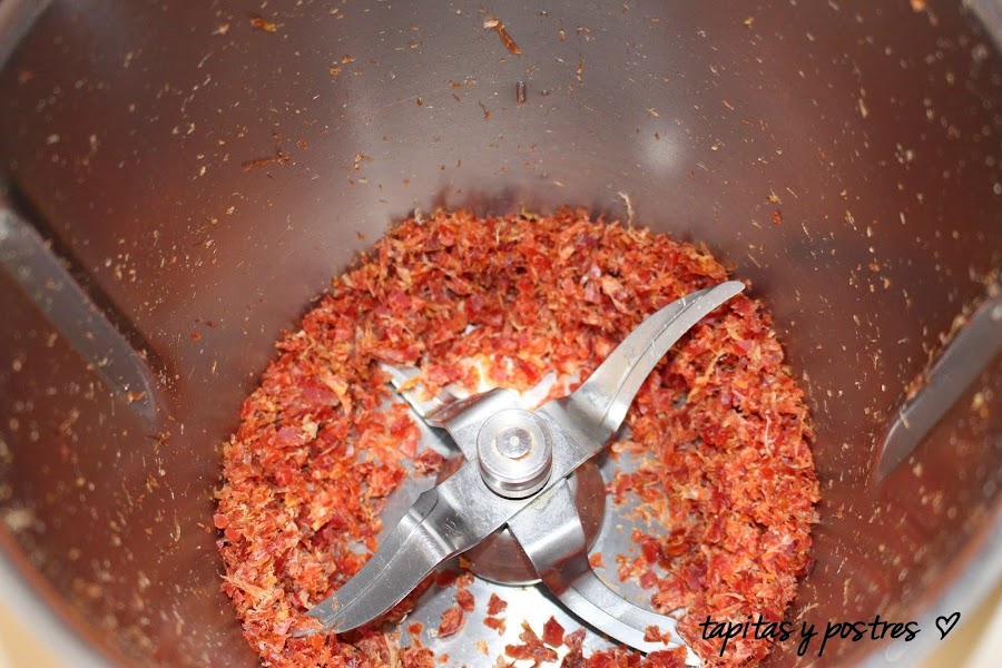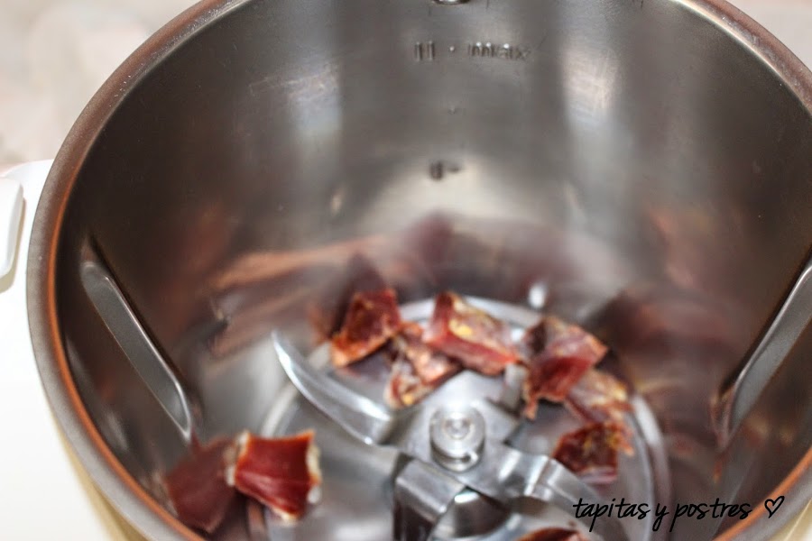 Picamos el jamón 6 segundos a velocidad progresiva 5-10. Debe quedar finito.