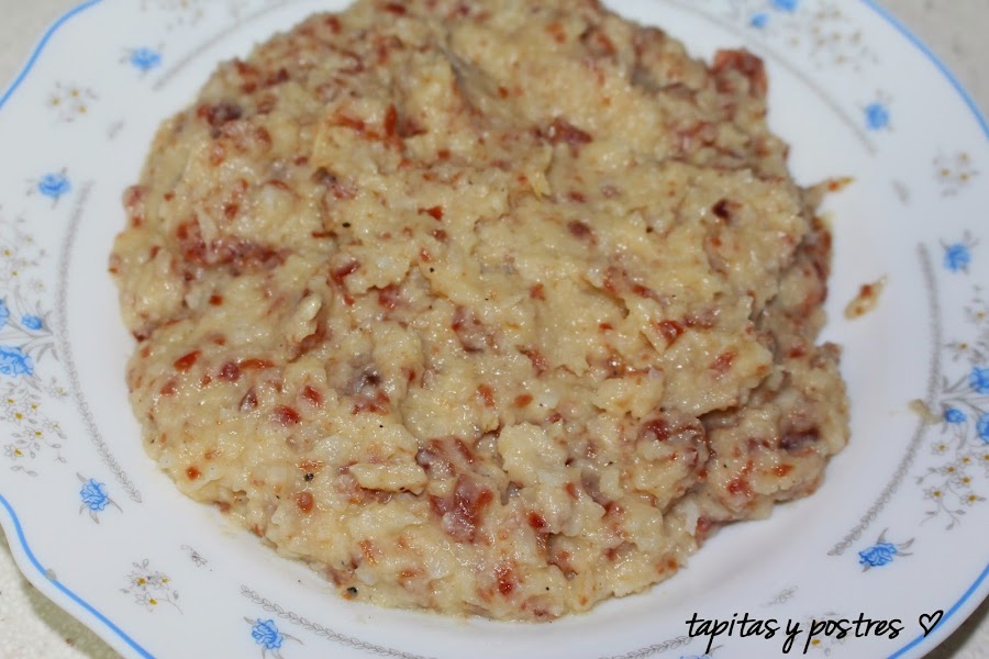 Colocamos la masa en un plato y dejamos enfriar. Lo suyo es dejarla unas horas, pero yo tenía prisa y formé las croquetas al momento.