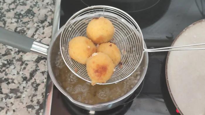Solo nos queda freír. Debemos utilizar abundante aceite, que en el momento de echar las croquetas debe estar muy caliente, pero no humeante.