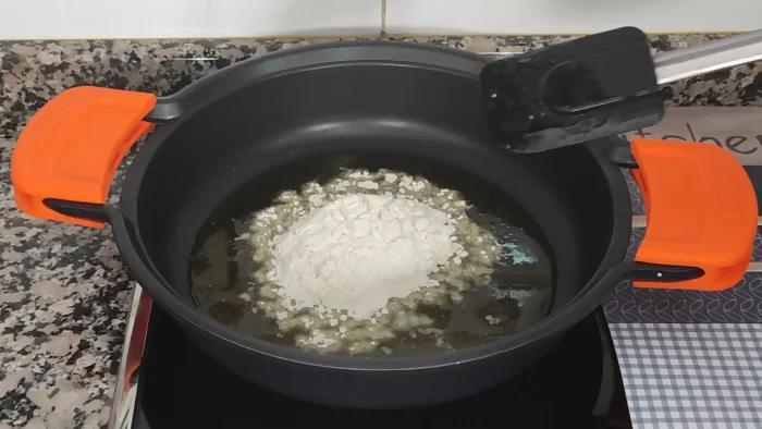 Con el aceite caliente incorporaremos 50 gr de harina.
