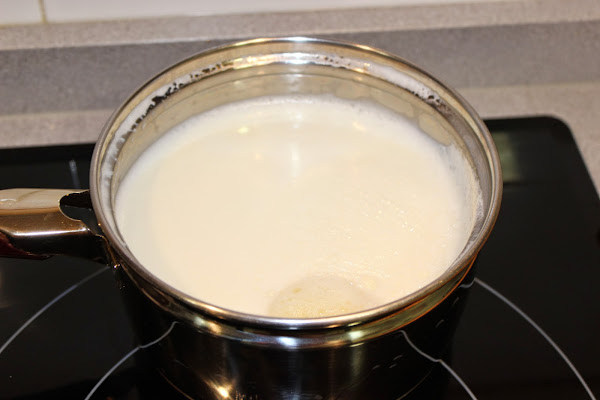 Lo primero que vamos a hacer es calentar la leche con una cebolla
