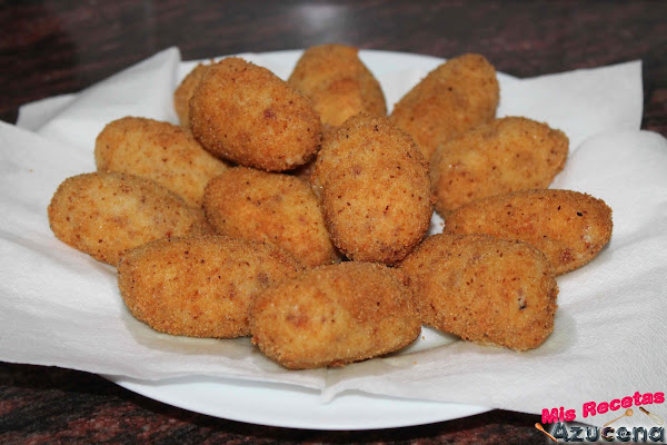Ponemos a calentar la freidora o una sartén con abundante aceite, cuando este caliente añadiremos las croquetas por tandas y las dejaremos hasta que se doren. A la hora se sacarlas las pondremos en un plato al cual le habremos puesto papel para que absorba el exceso de aceite.