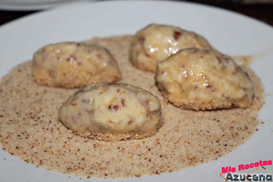 Ahora con ayuda de una cuchara o con nuestras manos bien limpias iremos formando las croquetas, después las pasaremos primero por el huevo y a continuación por el pan rallado.
