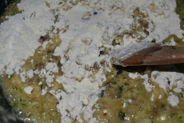 Agregamos la mitad del jamón y vamos añadiendo leche poco a poco.