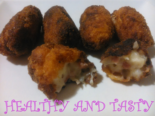 Una vez la bechamel está fría, podemos dar forma a las croquetas con la ayuda de 2 cucharillas. Luego las pasamos por huevo batido y pan rallado. Las freímso en abundante aceite caliente o las colocamos en una bandeja para congelarlas y consumirlas otro día.
