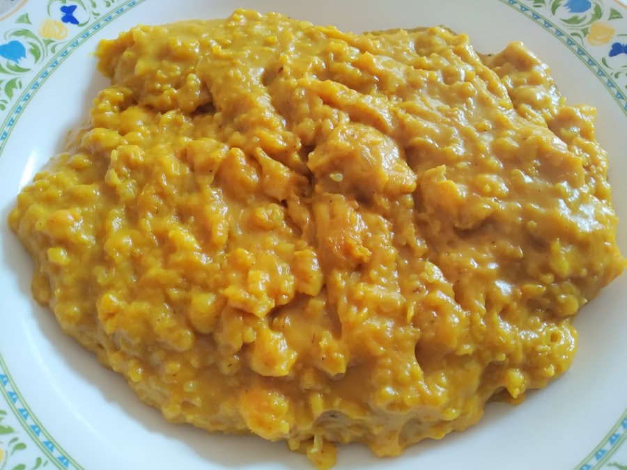 Es muy típico en India hacer salsas de curry con leche de coco, sobre todo si pica tanto como éste de Madrás, porque suaviza mucho los sabores y da una cremosidad especial. Ello me dio la idea para hacer unas exóticas y sorprendentes croquetas, ideal para aquellas personas que no pueden consumir productos lácteos de origen animal.