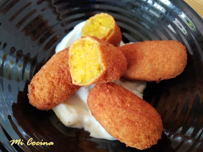 Por ella, para ella, para Nadia, con la "esperanza" de que le gusten, he preparado éstas CROQUETAS DE LANGOSTINOS CON LECHE DE COCO Y CURRY DE MADRÁS.
