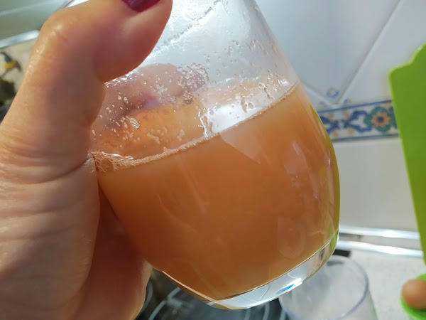 Cuando estén dorados, añadir el agua, llevar a ebullición dejando cocer durante un minuto. Colar y reservar el caldo resultante.