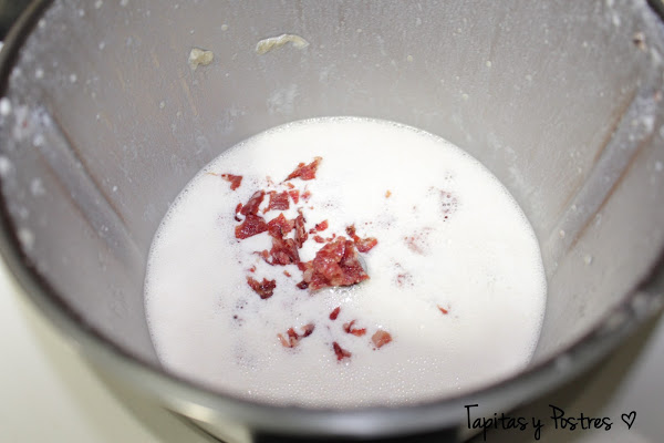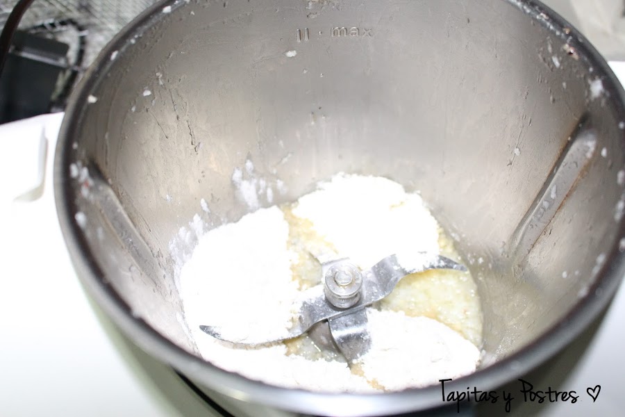 Añadimos la harina y cocinamos un minuto a 100º y velocidad 2 ½. Así le quitamos el gusto a harina cruda.