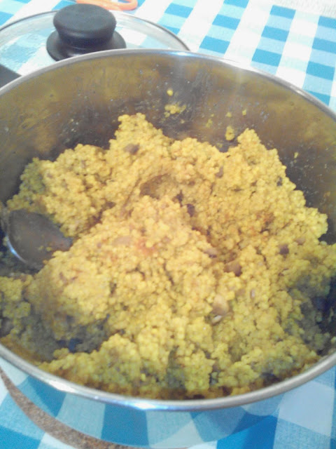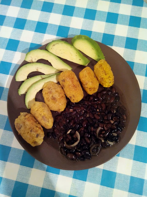 De vez en cuando compro mijo para hacer croquetas , hamburguesas , albóndigas... y hoy se me ocurrió hacer unas croquetas con habas negras y aguacate para acompañar, un plato rico y muy completo.