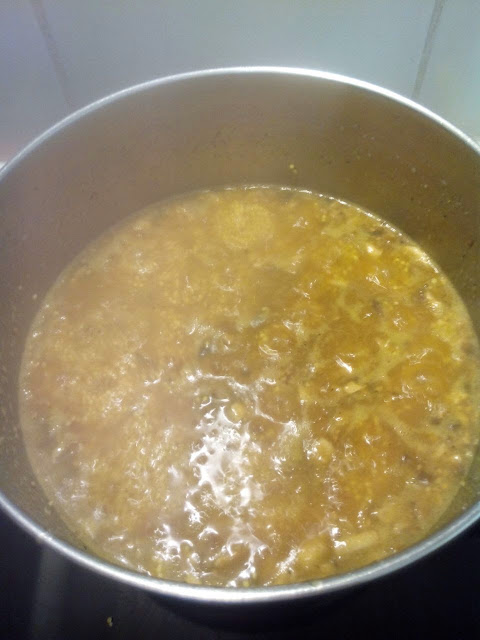Agregamos mas agua y tapamos y dejamos cocinar a fuego medio para que nose pegue por debajo.