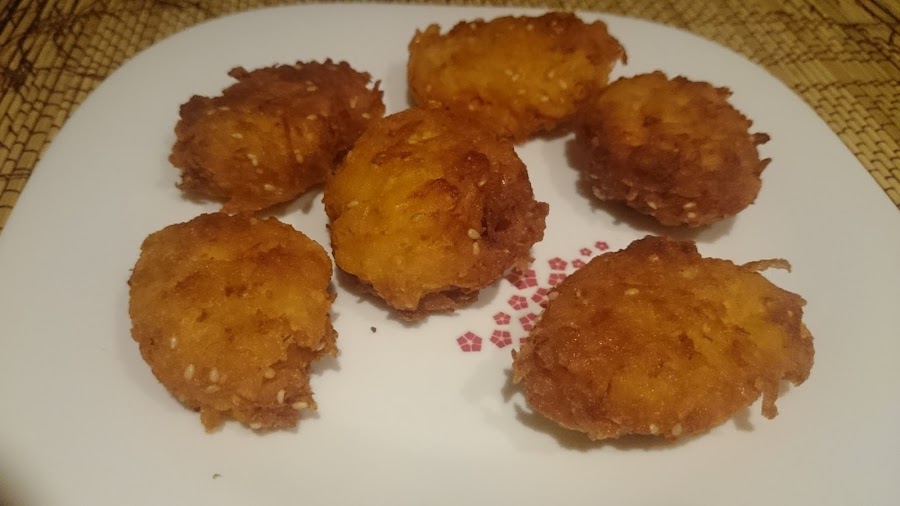 En primer lugar cogeremos las patatas las pelamos, lavamos y ahora con la ayuda de un rallador de mano procedemos a rallarlas, yo lo he puesto con el más finito que hay, cuando estén ralladas las pondremos en un colador grande para que vayan escurriendo el agua que tienen, ahora cogeremos la zanahoria y haremos la misma operación, pelado, lavado y rallado y también lo pondremos en el colador junto con la patata para que se escurra todo el agua que suelta, se puede dejar durante 2 horitas para que escurra o si tenemos prisa por hacerlas cogeremos una cuchara de madera e iremos apretando la masa para que se escurra más rápido, una vez esté bien escurrido lo pondremos en un bol, cogeremos y echaremos media cucharadita de las de café de sal y mezclamos, ahora le pondremos también un poquito de jengibre (al gusto) y volvemos a mezclar, a continuación cogeremos un huevo, lo abrimos y echamos junto con lo demás y con la ayuda de una cuchara vamos mezclado todo,