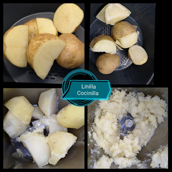 2. Pele las patatas (con cuidado de no quemarse) y póngalas en el vaso, añada la sal y la pimienta y triture 30 seg/vel 3. Retire del vaso y reserve.