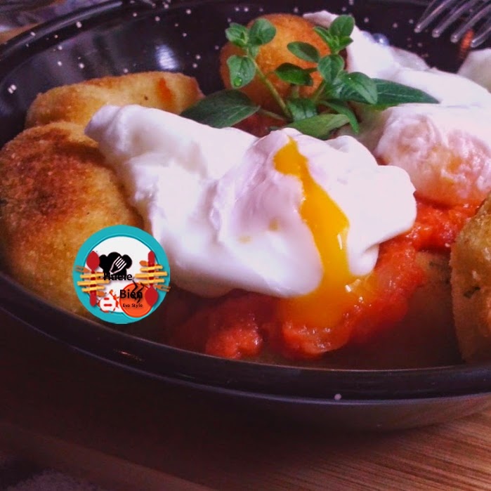 El sábado le di la vuelta a este plato, preparando unas croquetas de patatas con ajo y perejil. Que acompañe con una salsa de tomate casera y unos huevos escalfados.