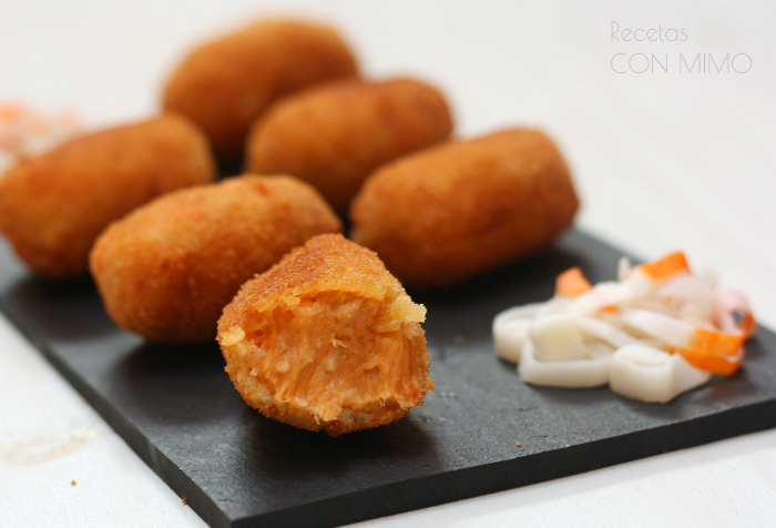 Cuando ví que había nueva cita con éste genial reto en Julio pensé que no me daría tiempo, pues estoy a punto de irme de vacaciones y ya había echado el cierre temporal al blog, pero al ver estas croquetas... se me hizo la boca agua y esa misma noche preparé la masa. Y son grandisimas merecedoras de ser publicadas, así que aquí las traigo. Ricas y muy sabrositas. Con rico sabor a mar. Eso sí, con un par de adaptaciones propias. Seguro que en casa repetimos más de una vez. No os las perdáis.Tiempo de preparación: