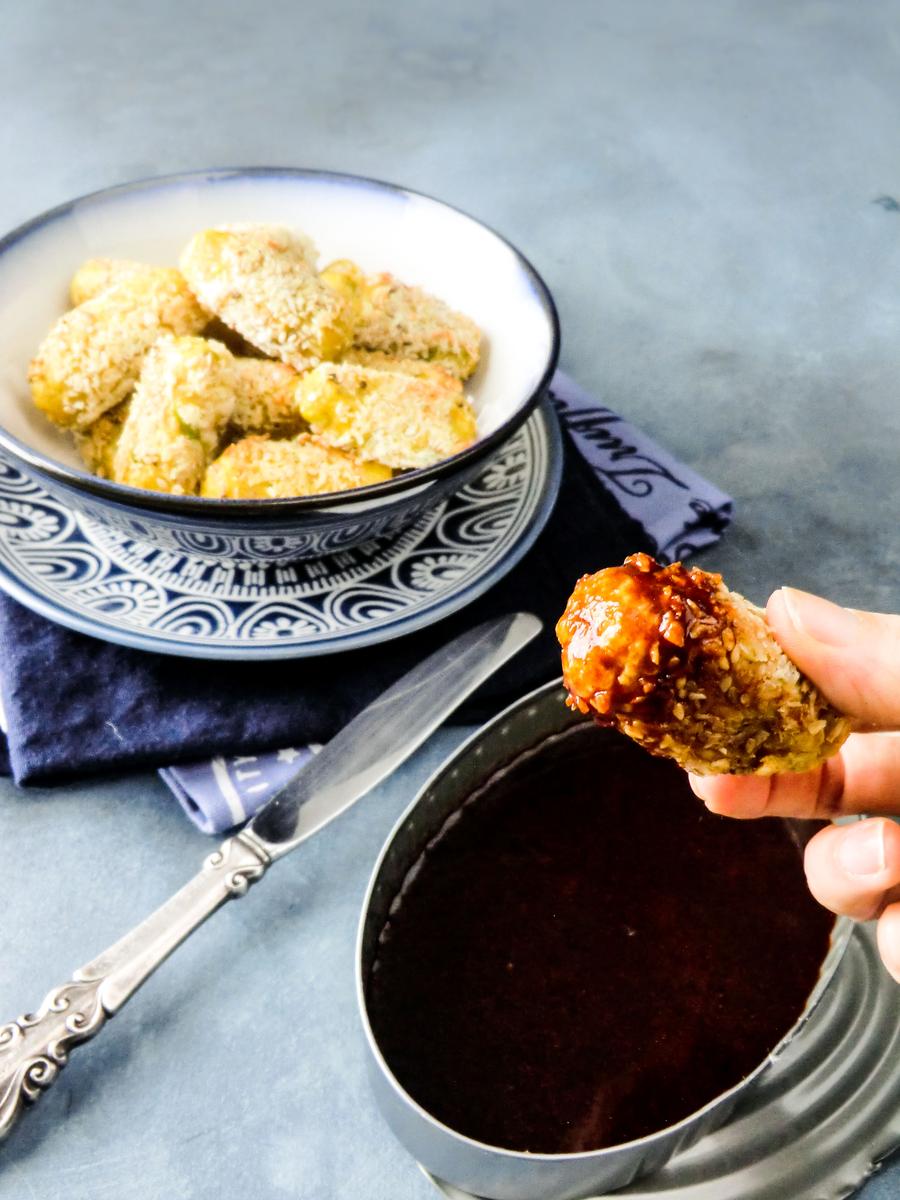 Mientras las croquetas se hornean, mezclar todos los ingredientes para la salsa y llevarlos a fuego medio por 10 minutos para que los sabores se integran y el chile picante deje su sabor y picor en la salsa.